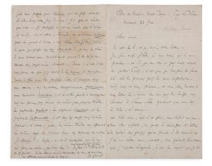 ► Longue lettre sur ses projets lyriques. [Legouvé a demandé à Gounod d'écrire des choeurs et de la musique de scène pour sa pièce Les Deux Reines, et Jules BARBIER lui a proposé les livrets de Fiesque et de Chimène.]