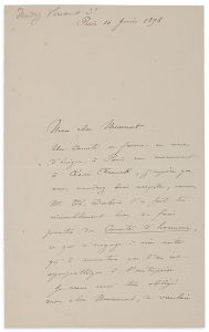«Un Comité se forme en vue d'ériger à Paris un monument à César Franck». Il espère que Massenet acceptera, comme Théodore Dubois, de «faire partie du Comité d'honneur, ce qui n'engage à rien d'autre qu'à montrer que l'on est sympathique à l'entreprise».