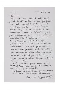 C'est dommage, car j'aimerais bien vous revoir et surtout vous réentendre, autrement qu'en conserve sur la bande précieuse de la 1ère de Bâle ; vous réentendre en pleine action, en chair et en os. C'est très joli, les bandes ou les disques, mais ils disent toujours exactement la même chose. Enfin, espérons quand même qu'une bonne fortune nous réunira de nouveau un jour autour de ce concerto»... [Sa troisième femme étant Hollandaise, Martin a quitté la Suisse pour s'installer près d'Amsterdam.]