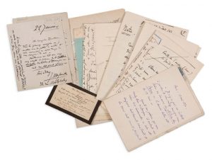 • une carte de visite a.s. à divers : le graveur Baudon (pour la gravure des Scènes pittoresques et de Marie-Magdeleine, 1874), Albert Carré, Blanche du Bosquet, un directeur, un ami, etc.