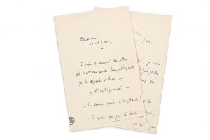 «Je suis vraiment trop loin et j'ai perdu la patience de rester ainsi en voyage sans toi. [...] hier soir Thaïs que j'ai été voir un instant - aujourd'hui répétition de Cendrillon. Je vais assez bien. [...] Mais toi? Que fais-tu? Comme cela est pénible après les bons mois ensemble. Ils recommenceront les heureux moments et c'est ma seule raison d'avoir le courage d'être absent». Et il termine : «Je t'embrasse fort Moi!»