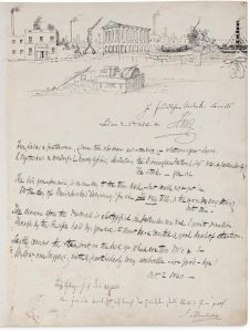 «Here, Ladies and Gentlemen [...] a mysterious and wonderful hieroglyphic, illustrating the Birmingham Festival, Sep : 1840 - & particularly The Stork - you see. The bird, you perceive, is on the way to the Town Hall, but could not get in, on the day of Mendelssohns Lobgesang for she is very tall & the room was anything but thin. [...] Lastly, comes the steamboat, on the deck of which are two M's and I - Below, our baggage, with a particularly long umbrella - so - good-bye!»