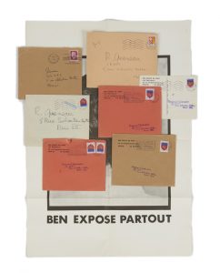 Tous les documents imprimés de Ben sont sous enveloppes de sa main ou bien elles portent le tampon de l'adresse de Raymond Queneau réalisé par Ben.