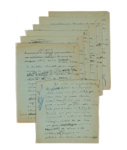 COLETTE (1873 - 1954) - À L'OMBRE DU MAL DE H. R. LENORMAND. Manuscrit autographe, 1924. 7 pages in-8 et in-4 à l'encre sur papier bleu.