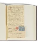 Toute la correspondance est montée sur onglets dans deux reliures identiques, plein maroquin bordeaux, dos lisse titré or, doublures et gardes de daim gris souris, chemises titrées, étuis (Miguet).