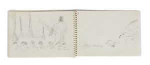 A la fin du carnet figurent 6 dessins autographes au crayon: tête de chat, paysage, aigle, frises de personnages, serpent, etc.