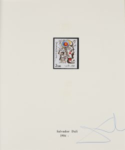 artistes de l’Ecole de Paris. Les feuillets, montés sur onglets, qui portent les signatures autographes des différents artistes, ont été réunis dans deux reliures (32 x 29 cm) et un emboTtage (44 x 36 cm). Parmi les signatures : Bernard Buffet, Salvador Dali, Maurice Esteve, Hans Hartung, Jean Carzou, André Masson, Georges Mathieu, Edouard Pignon, Juan Miro, Pierre Soulages, Pierre-Yves Tremois, Victor VASARELY... Ensemble réalisé en tirage limité, réservé aux artistes signataires et à un petit nombre de personnalités frangaises et étrangères dont le Président des Etats-Unis, Ronald Regan.
