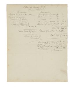 Extrait de comptes autographe signé deux fois par Arthur Rimbaud destiné à l'un de ses partenaires commerciaux Armand Savouré :