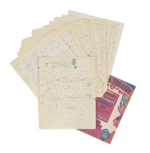 • la plaquette de «Paris Théâtre» de novembre 1952 dans laquelle figure le texte intégral de la traduction de Vian de «Mademoiselle Julie» et de «L'Équarrissage pour tous» de Boris Vian.