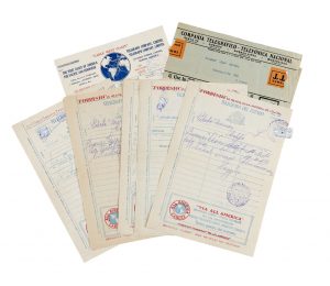 Ensemble de 10 télégrammes de félicitations envoyés à Mermoz après sa double traversée des Andes, avec Henry de la Vaulx et Alexandre Collenot, émaillée de terribles péripéties. Ces messages sont rédigés par Thomaz, Portait, Sieyes, Raggio, Mariano Puga, Almonacid, le commandant Merino, le sous-secrétaire Carvajal, la légation de France et Alfredo J. Rouillon. Au dos de l’un d’eux, Mermoz a dessiné un plan au crayon mentionnant Santa Rosa et Salino.