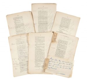 Ce jeu d’épreuves, inconnu des éditeurs des Œuvres complètes de Saint Exupéry, constitue l’ultime étape connue de l’écriture de cette œuvre majeure, entre le manuscrit intégral et les 2 seules dactylographies existantes, actuellement en mains privées, et l’édition originale publiée par Gallimard en 1931 préfacée par André Gide.