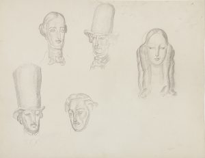 DUPAS JEAN (1882 - 1964). Étude de têtes Dessin au crayon non signé. 35,5 x 46 cm Esquisse préparatoire pour le tableau «Sylvie»