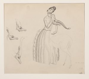 DUPAS JEAN (1882 - 1964). Jeune femme à l'antilope. Dessin au crayon monogrammé et daté Fév.1926. 22.5 x 25 cm.