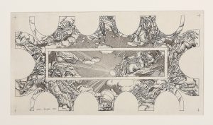 DUPAS JEAN (1882 - 1964). Étude pour le Palais carol Belle esquisse préparatoire à l'encre rehaussée de gouache blanche. Signée Jean DUPAS en bas à gauche et datée de 1935. 27 x 47 cm.