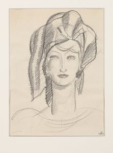DUPAS JEAN (1882 - 1964) - Jeune femme au turban Dessin à l'encre de Chine monogrammé. 20 x 14.5 cm.