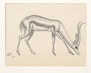 DUPAS JEAN (1882 - 1964) - Antilope Dessin à l'encre de Chine monogrammé et daté 1923 en bas à gauche. 18,5 x 21,5 cm.