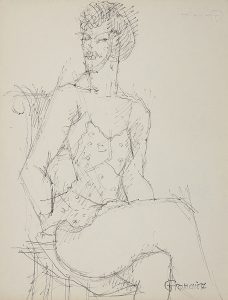 GROMAIRE MARCEL (1892 - 1971) - Femme à la combinaison, 1943. Dessin original à l'encre noire représentant une femme assise cuisses nues portant une combinaison. 32,5 x 25 cm.