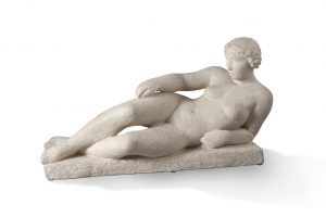 YENCESSE HUBERT (1900 - 1987) - Epreuve en plâtre représentant une femme nue allongée Signée sur la terrasse. 55,5 x 16 x 32,5 cm.