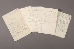 ─ 15 avril 1903: «Je recoie à l'instant la visite de Monsieur Hesselle [HESSEL] venant de vôtre part [...] Il ai tout disposé à metre très utile il m'a dit ne pas vouloir rien séparé de la colection que je poséde». Elle doit «aller le voir affin de faire un clacement sérieux et faire un catalogue [...] ce qui presse c'est qui m'achète des pierres que j'ai en double affin que je puisse attendre»...