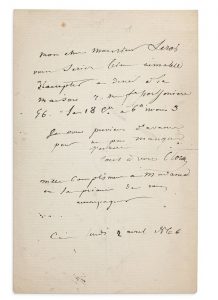 COROT CAMILLE (1796 - 1875) - L.A.S., 2 avril 1866, à M. LEROI ; 1 page in-8.