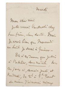 DEGAS EDGAR (1834 - 1917) - L.A.S., Mardi, [à Alexis ROUART]; 1 page et quart in-8 (petite fente au pli central).