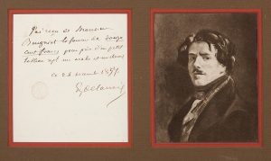 DELACROIX EUGÈNE (1798 - 1863) - P.A.S., 24 décembre 1857 ; 1 page in-12, cachet de collection (encadrée avec portrait).