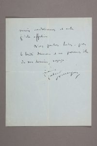 «Je reçois la terrible nouvelle, votre chère mère n'est plus ! C'est affreux, elle si vivante, toujours la même, je n'en puis croire la lettre que je reçois. Je viens vous dire la part grande que nous prenons ma femme et moi à votre chagrin».