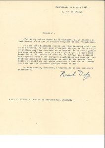 DUFY RAOUL (1877 - 1953) - Lettre tapuscrite signée, Perpignan, 8 mars 1947 - 1 page in-4.