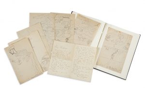 On joint une L.A.S. de Paul GAUGUIN à Mme Bousquet, la mère du jeune garçon pour qui les dessins ont été réalisés; 2 pages in-8.
