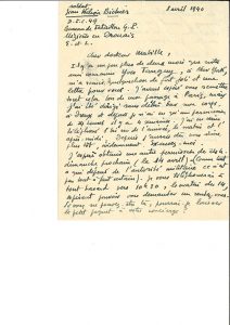 HELION JEAN (1904 - 1987) - L.A.S à Pierre MABILLE, 8 avril 1940. 2 pages in-8.