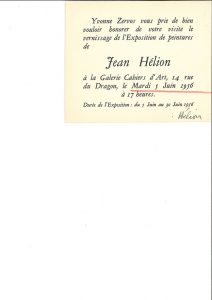 • un carton d'invitation signé par HELION pour une de ses EXPOSITIONs et adressé à Raymond QUENEAU.