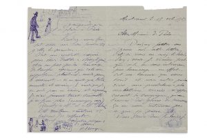 ♦ Amusante lettre illustrée de 4 dessins à la plume.