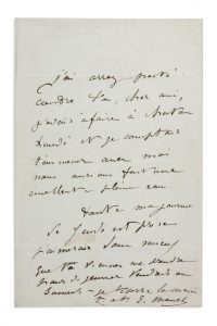 «J'ai assez pesté contre toi, cher ami, j'avais à faire à Chatou Lundi et je comptais t'emmener avec moi nous aurions fait une excellente pleine eau. Toute ma journée de Jeudi est prise j'aimerais donc mieux que tu viennes me prendre pour déjeuner vendredi ou samedi»...