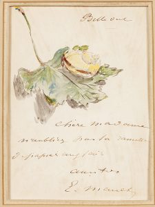 MANET ÉDOUARD (1832 - 1883) L.A.S. avec AQUARELLE originale, Bellevue [1880], à une dame ; 1 page in-8 (15,8 x 11,7 cm), aquarelle et encre sur papier (encadrée, très légères traces de collage au verso visibles par transparence).