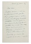 MATISSE HENRI (1869 - 1954) - L.A.S., 15 janvier 1945, [à Henry de MONTHERLANT] ; 2 pages in-8.