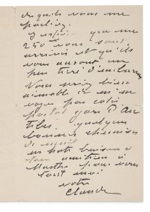 Il termine : «en hâte baisers à tous amitiés à Marthe pour vous tout moi votre Claude».