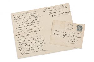 «Je rentre enfin dans 3 jours je serai à Giverny et quelques jours après j'aurai le plaisir de vous voir. En attendant je viens vous demander un grand service. [...] Il s'agit d'une très importante exposition que je vais faire à la galerie Petit moi et le sculpteur Rodin, exposition s'adressant beaucoup au public étranger et qu'il faut faire aussi complète que possible, vous me voyez venir n'est-ce pas.