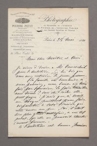 PETIT PIERRE (1831 - 1909) - L.A.S., Paris 28 mai 1881, au flûtiste; Henry ALTÈS ; 2 pages in-8 à son en-tête : Pierre Petit Photographie...