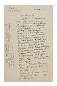 PISSARRO CAMILLE (1830 - 1903) - L.A.S., Paris 4 décembre 1895, à son fils Félix ; 1 page et demie in-8.