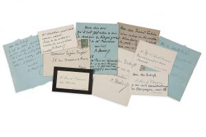 PUVIS DE CHAVANNES PIERRE (1824 - 1898) - 4 L.A.S., 1 L.A. et 4 cartes de visite autographes (2 signées), 1892-1898, à divers ; 10 pages formats divers, quelques adresses, une enveloppe.