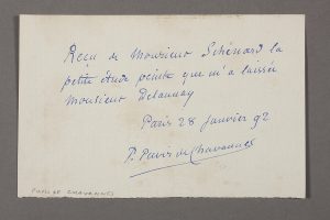 «Reçu de Monsieur Schénard la petite étude peinte que m'a laissée Monsieur Delaunay»...