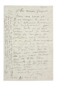 RENOIR AUGUSTE (1841 - 1919) - L.A.S., Cagnes 29 mars 1907, à Maurice GANGNAT ; 1 page in-8.