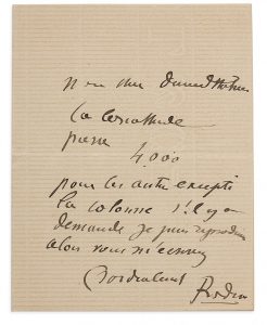 RODIN AUGUSTE (1840 - 1917) - L.A.S., [1897], à Hippolyte DURANDTAHIER ; 1 page in-12.