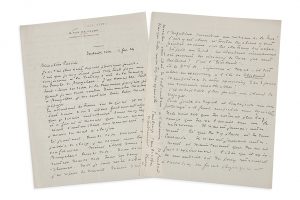 «En attendant le train sur le quai il m'était venu 2 ou 3 idées fondamentales que je devais introduire dans mon texte; et au fur et à mesure que nous avancions d'autres idées me venaient que j'avais du mal à classer. Et pourtant, lundi soir devant un public de choix j'ai donné une bonne conférence. Mémé [sa femme Maria] était venue à Bruxelles lundi soir. Nous sommes rentrés mardi soir tous les deux enrhumés. Moi je suis resté debout et j'ai repris le travail»... Ils ont été très heureux de recevoir sa lettre, étant sans nouvelles d'elle depuis quelques jours...