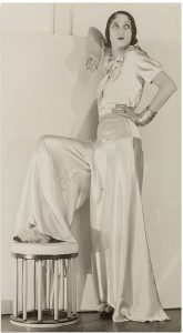 Tirage argentique d'époque représentant Renée PERLE dans un pyjama de soie.