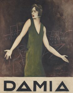 Affiche - Paul Colin. ‘’DAMIA’’. Maquette originale peinte à la gouache. Projet d’affiche pour les disques. Encadrée sous verre, 58,5 x 46 cm.