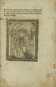 ANTONINO (SANTO), [Summa confessionum]. Tractato volgare [...] intitolato Defecentur che insegna al confessore di che chasi & in che modo debbe domandare colui che egli confessa.(Al colophon : ) Impressa infirenze : apetitione di Ser Piero...