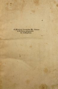 PLINIUS SECUNDUS GAIUS, Historia naturalis [Ed : Johannes Britannicus]. (Al colophon) Brixiae : opera et impensa Angeli & Iacobi de Britannicorum fratum, 1496 die 20 aprilis.