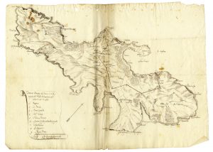 RACCOLTA DI DOCUMENTI MANOSCRITTI relativi ai 'termini giurisdizionali' di Portoferraio e alla famiglia Appiani, insieme ad una cartina dell'isola tratteggiata a mano. Datati 31 gennaio 1704.