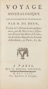BORN IGNAZ (von), Voyage minéralogique fait en Hongrie et en Transilvanie [...] Traduit de l'Allemand, avec quelques notes, par M. Monnet… A Paris : rue et hostel Serpente, 1780.